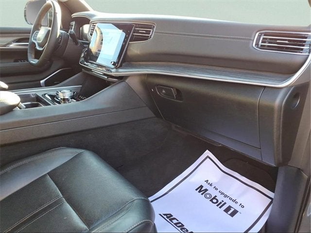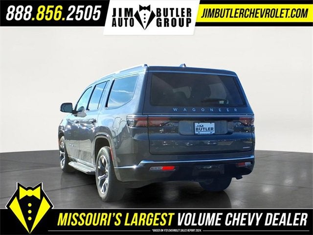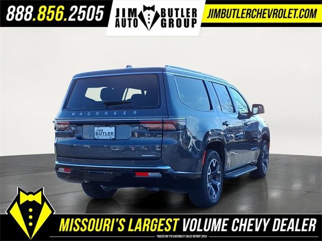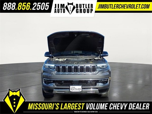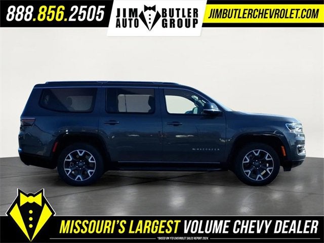 Come see why we are the #1 Chevrolet dealership in the Midwest. On top of that we have also been awarded Dealer of the year the last 8 years. Proudly serving: St. Louis, South County, Webster Groves, Creve Coeur, Kirkwood, Maryland Heights, Sullivan, Rolla, Columbia, Fenton, Chesterfield, St. Charles, Kansas City, Springfield, Jefferson City, and all of great Missouri and Illinois. While we make every attempt to ensure pricing accuracy. Dealer not responsible for computer or human error, dealer reserves the right to change prices due to human or computer error. In order to put a 24 hour hold deposit on vehicles, Financing must be secured thru Jim Butler Chevrolet Business Office and Cash Deals must be Electronically Transferred within Six Hours. Quick Order Package 25N, 10 Speakers, 3.55 Rear Axle Ratio, 3rd row seats: bench, 4-Wheel Disc Brakes, ABS brakes, Adjustable pedals, Air Conditioning, Alloy wheels, AM/FM radio: SiriusXM with 360L, Anti-whiplash front head restraints, Apple CarPlay/Android Auto, Audio memory, Auto High-beam Headlights, Auto-dimming door mirrors, Auto-dimming Rear-View mirror, Auto-leveling suspension, Automatic temperature control, Brake assist, Bumpers: body-color, Compass, Delay-off headlights, Driver door bin, Driver vanity mirror, Driver's Seat Mounted Armrest, Dual front impact airbags, Dual front side impact airbags, Electronic Stability Control, Emergency communication system: Wagoneer Connect, Exterior Parking Camera Rear, Four wheel independent suspension, Front anti-roll bar, Front Bucket Seats, Front Center Armrest w/Storage, Front dual zone A/C, Front fog lights, Front reading lights, Fully automatic headlights, Garage door transmitter, Genuine wood console insert, Genuine wood dashboard insert, Genuine wood door panel insert, Heated door mirrors, Heated front seats, Heated rear seats, Heated steering wheel, Illuminated entry, Knee airbag, Leather Trimmed Bucket Seats, Low tire pressure warning, Memory seat, Navigation System, Normal Duty Suspension, Occupant sensing airbag, Outside temperature display, Overhead airbag, Overhead console, Panic alarm, Passenger door bin, Passenger seat mounted armrest, Passenger vanity mirror, Pedal memory, Power adjustable front head restraints, Power door mirrors, Power driver seat, Power Liftgate, Power passenger seat, Power steering, Power windows, Radio data system, Radio: Uconnect 5 Nav w/10.1 Display, Rain sensing wipers, Rear air conditioning, Rear anti-roll bar, Rear dual zone A/C, Rear reading lights, Rear seat center armrest, Rear window defroster, Rear window wiper, Reclining 3rd row seat, Remote keyless entry, Security system, Speed control, Speed-sensing steering, Speed-Sensitive Wipers, Split folding rear seat, Steering wheel memory, Steering wheel mounted audio controls, Tachometer, Telescoping steering wheel, Tilt steering wheel, Traction control, Trip computer, Turn signal indicator mirrors, Variably intermittent wipers, Ventilated front seats/Cooled Seats, Voltmeter, and Wheels: 20 x 9.0 Aluminum (DISC)