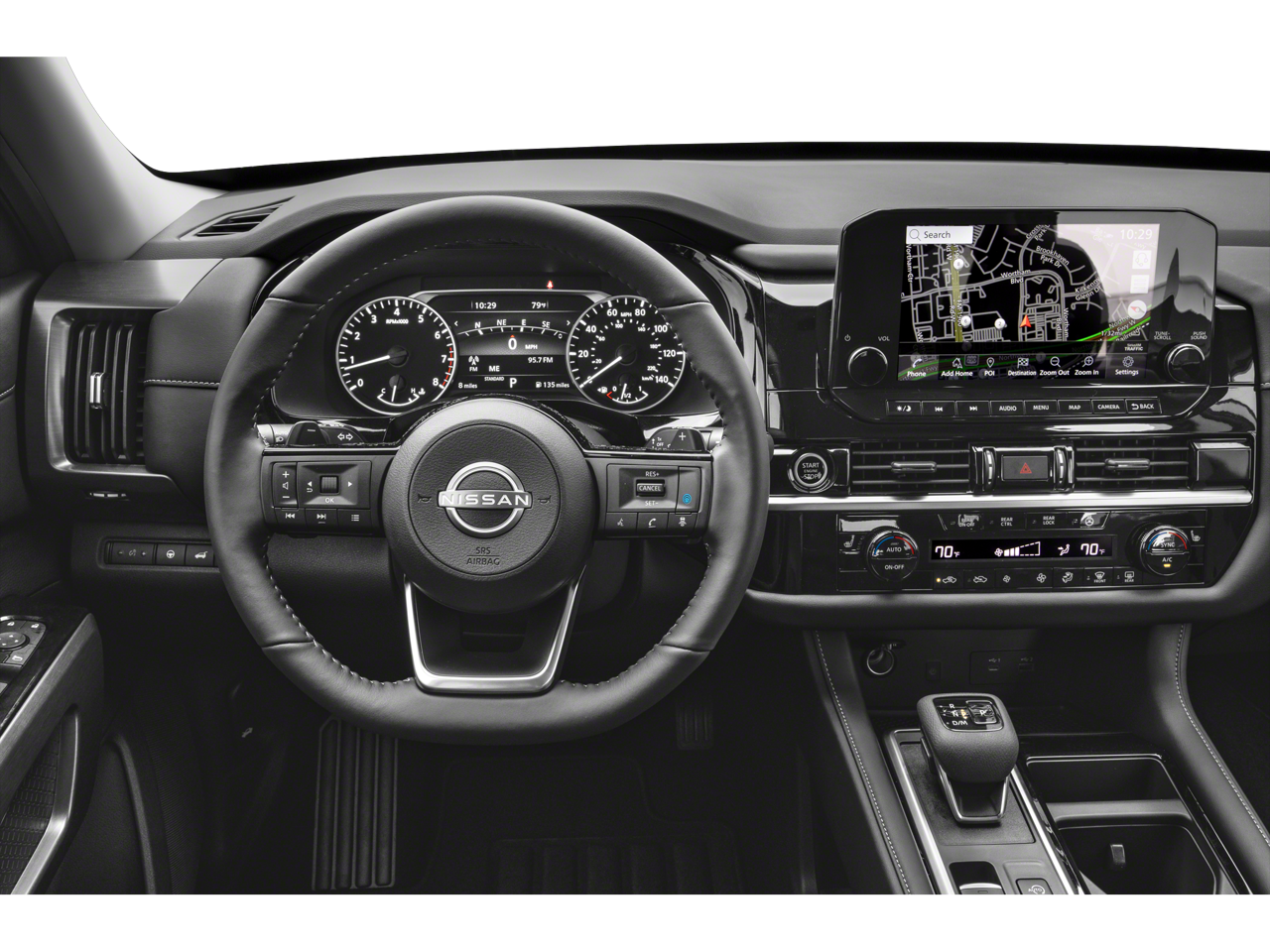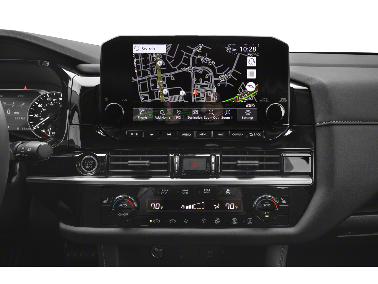 - NissanConnect w/Navigation & Services -inc: door to door connected navigation w/3D building graphics, satellite imagery, online POI search, online premium traffic information and SiriusXM Traffic and Travel Link w/weather, fuel prices, movie listings, stock info, sports and parking